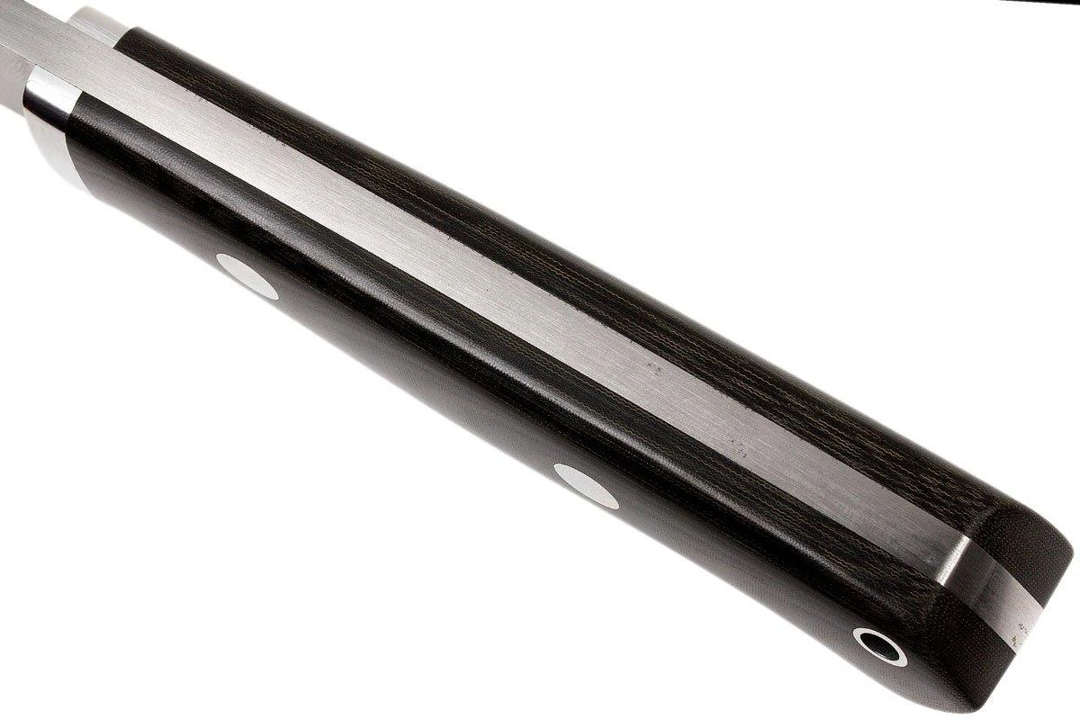 El Bark River Gameskeeper es un gran cuchillo de caza. Este cuchillo fue diseñado específicamente para la caza mayor como el ciervo, el alce o el oso. Este cuchillo puede hacer frente a las tareas más exigentes. Hacia la punta la hoja sigue siendo muy gruesa. Por ello, la punta es extra fuerte. Se colocó una ranura plana para el dedo justo detrás del borde, antes de la virola. De este modo, puedes mantenerlo un poco más cerca del borde para las tareas más detalladas.