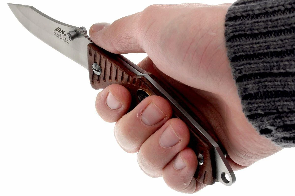 Este cuchillo es polivalente y es ideal para uso en exteriores. El cierre backlock y la hoja de acero Sandvik 12C27 de primera calidad ofrecen la solidez y la fiabilidad que se espera de un cuchillo de este tipo. La hoja está dotada de prácticos rebordes para poder dirigirla correctamente. No es muy sofisticada, pero es perfecta para el uso diario. La hoja es adecuada para que los usuarios zurdos y diestros la abran con una sola mano, utilizando el apoyo para el pulgar.