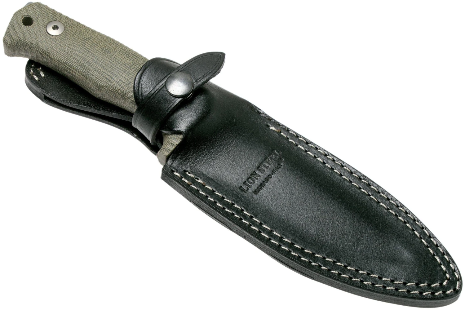 LionSteel M7 CVG Satin, Green Canvas Micarta Cuchillo Fijo, Molletta Design