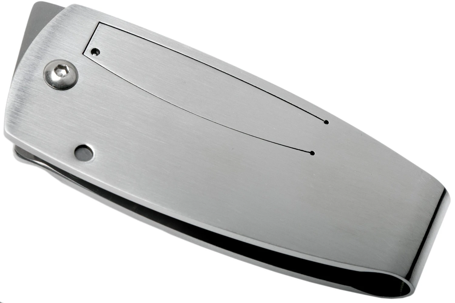 El Mcusta MC-0084 Pocket Clip Kamon Fuji es un interesante cuchillo de caballero. Es único dentro de la gama Mcusta. Los cuchillos de la serie Pocket Clip Kamon tienen un mango hecho de una sola pieza de acero, que se ha doblado para crear un clip de bolsillo. Esto te permite llevar fácilmente el cuchillo en el bolsillo o atado a tu corbata como un pasador de corbata. ¡Muy elegante! La hoja de acero AUS-8A se abre con el nail nick y, a continuación, un cierre linerlock, integrado en el mango, mantiene la hoja en su lugar.