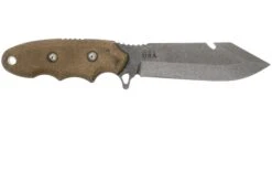 El Ontario RAT 3 es un sólido cuchillo de supervivencia con una hoja fabricada en acero al carbono 1095, un tipo de acero resistente y fácil de afilar. El revestimiento en polvo extremadamente sostenible de la hoja la protege de la sensibilidad a la corrosión del acero carbono. Por ello, recomendamos mantener este cuchillo seco y, posiblemente, ligeramente engrasado. Las maravillosas cualidades de uso del acero garantizan una vida de satisfacción. El cuchillo está mejorado con un mango de micarta. El mango se siente ligeramente áspero lo cual es genial porque es cómodo de sostener y ofrece suficiente agarre.