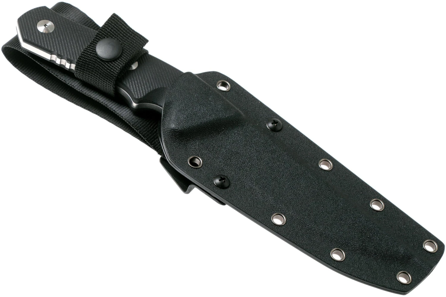 El Real Steel Sorrow es un cuchillo de supervivencia de gran tamaño que puede manejar bastante. El diseñador Jakub Wieczorkiewicz, de Poltergeist design, presentó definitivamente un caballo de batalla. La hoja ancha está hecha de acero D2. Un tipo de acero resistente que conserva bien su filo. El mango está hecho de G10. Un material resistente que te ofrece mucho agarre.