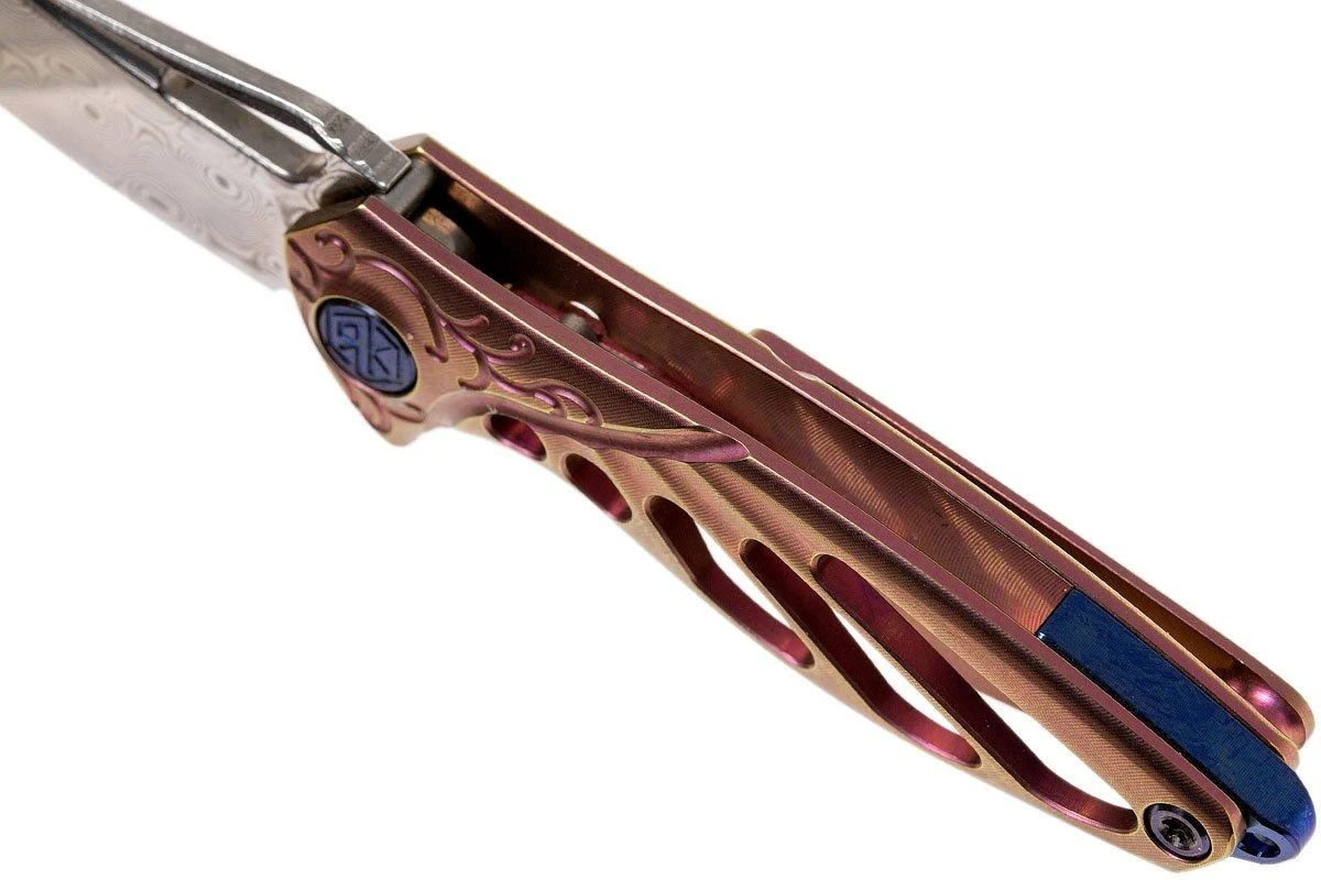 La Rike Mini Hummingbird es una pequeña navaja, fabricada con materiales fantásticos. Rike Knife se ha superado realmente con esta Hummingbird. La hoja está hecha de acero de damasco. Inoxidable y sorprendente. La acción del flipper no tiene precedentes para una navaja tan pequeña. El flipper abre la hoja con la máxima rapidez. Es realmente fantástico para un cuchillo tan minúsculo.