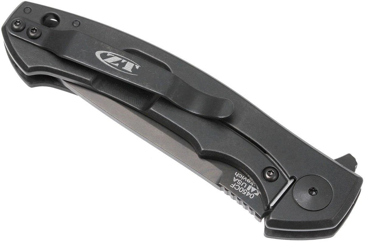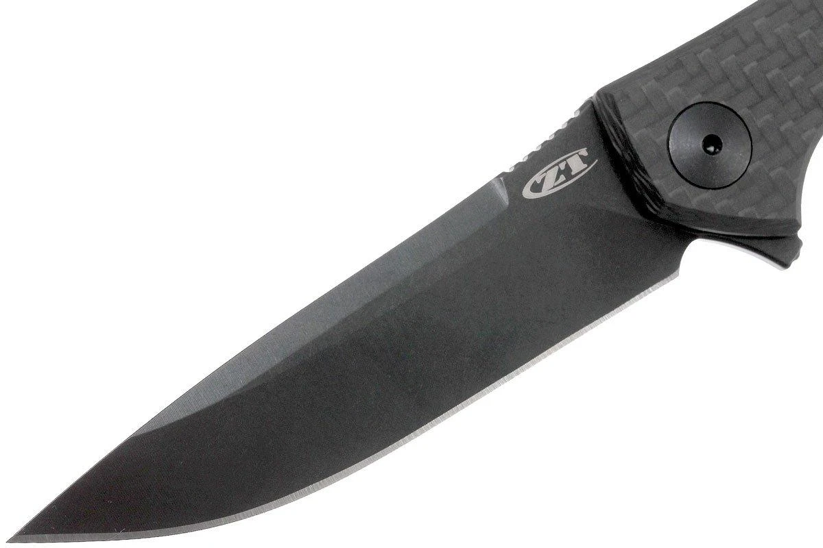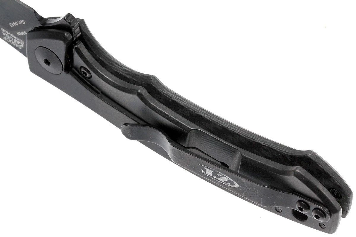 La Zero Tolerance 0450CF es una navaja de alta calidad, diseñada por Dmitry Sinkevich. Se trata de un segundo modelo de producción basado en la muy popular ZT0454. Esta 0450CF es bonita y delgada, ligera pero no por ello menos sólida. Uno de los lados del mango de la 450CF está hecho de fibra de carbono y solo pesa 69 gramos, en comparación con los 85 gramos de la ZT 0450.